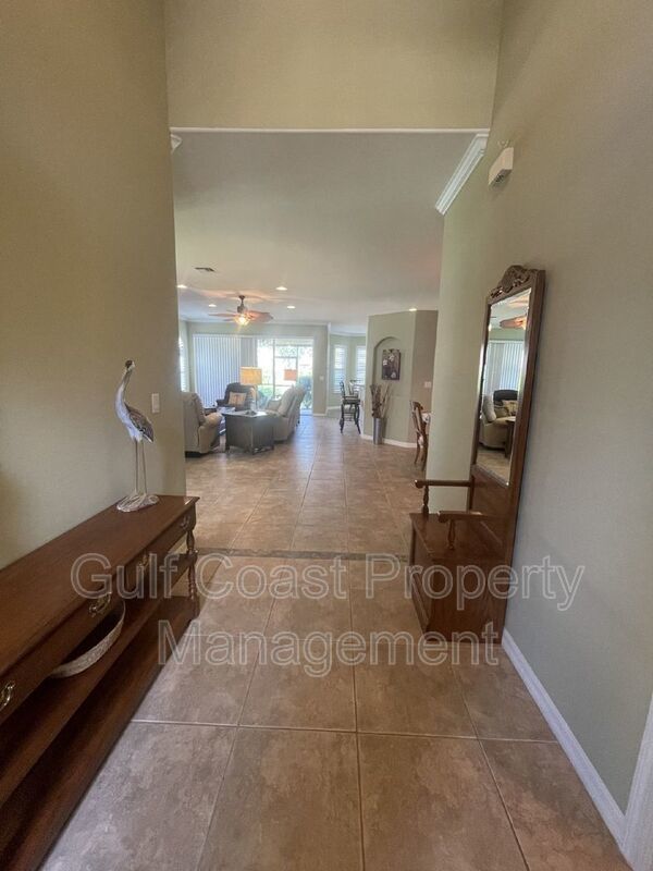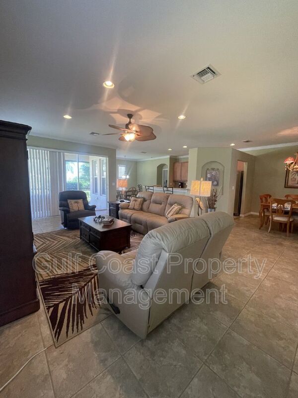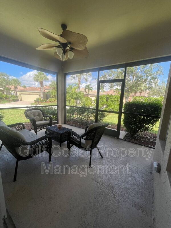 Take a look at this fully Turnkey single-family home! Available for an annual rental. Located in Colonial Shores just off of McGregor Blvd and Iona Rd. This beautiful 3 bedroom plus den (or possible fourth bedroom), 2 bath, 2 car garage is situated on a corner lot with partial lake view off of the screened in lanai. Spacious open floorplan makes entertaining with family and friends a delight. Large kitchen with granite countertops and stainless-steel appliances. Colonial Shores is a gated community with a heated community pool and fitness center. Pet Friendly with breed and weight restriction per HOA. Sorry, NO CATS. Basic cable, Internet, Quarterly exterior pest service, and Lawn care included in the rent. $35 monthly resident benefit package fee will be added to the rent. HOA application and add'l fees may apply.