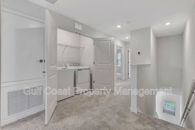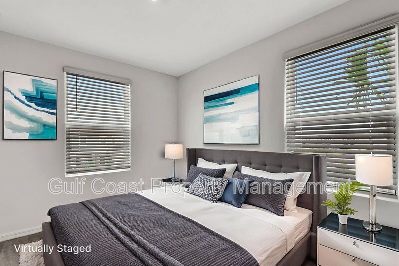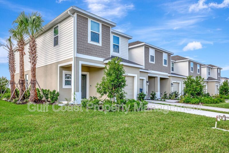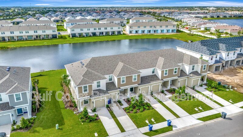 Annual rental located in the highly desirable community of Townhomes at Azario in Lakewood Ranch. As you enter this brand-new end unit, you’re welcomed by an open concept showcasing a chef’s kitchen adorned with rich cabinetry, gleaming granite countertops, and stainless-steel appliances, all overlooking the spacious living and dining areas. Step outside to the patio, where you can enjoy your morning coffee or unwind in the evening while taking in tranquil lake views. A conveniently located half bath completes the first floor. Upstairs, the thoughtfully designed split-bedroom layout ensures privacy and comfort. The primary suite offers a peaceful retreat with a large walk-in closet, dual vanities, and a walk-in shower. Two additional guest bedrooms share a beautifully appointed full bath. A laundry area with a full-size washer and dryer is also located on the upper level for added convenience. An attached one-car garage provides secure parking and additional storage. Residents will enjoy access to community amenities, including a resort-style pool with cabanas and a dog park, all within a beautifully maintained neighborhood setting. This prime location offers easy access to top-rated schools, world-class beaches, shopping and dining, University Town Center, Sarasota-Bradenton Airport, medical facilities, I-75 and much more. Available for immediate move-in upon approval. Small dog accepted with pet deposit. Some photos have been virtually staged to help you envision how this beautiful home can look once furnished. Schedule your private showing today before this one is gone! First month of rent and one month of security deposit required.