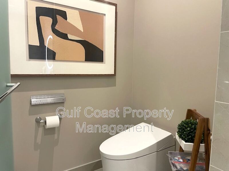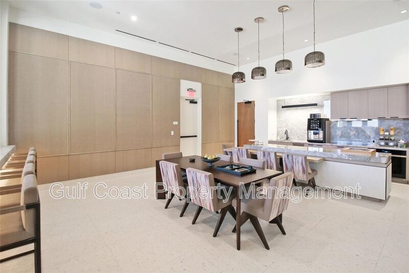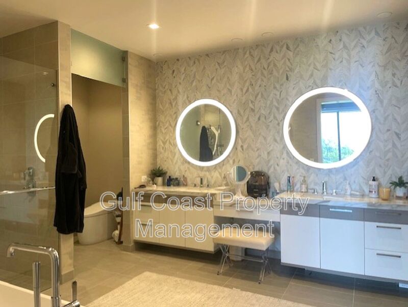 The elegant owner’s suite offers a private sanctuary with a spacious walk-in closet featuring custom wardrobe cabinetry, a frameless walk-in shower, and a secluded water closet. A private elevator with keyless entry provides direct access from your private two-car garage into your residence for ultimate convenience and privacy.
